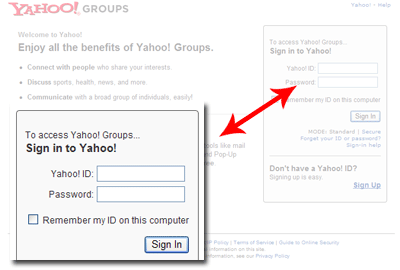 3- در صفحه جدید شناسه و رمز عبور یاهو! آی.دی خود را وارد کنید: